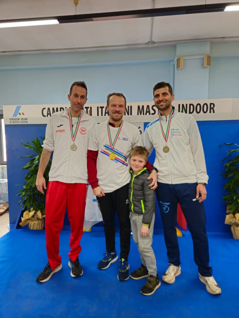 Sabato si sono svolti anche i Campionati italiani indoor master dove Juri Vitali ha vinto il suo sesto Titolo nel salto in alto (categoria SM40) con la misura di 1,75, sbagliano l’1,81 di pochissimo.