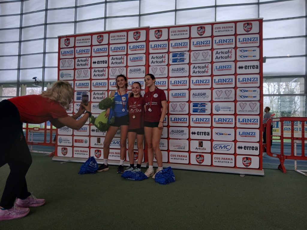 Anna Mangione si conferma leader regionale in velocità e salto in lungo, due tra le gare più partecipate del programma con 150 iscritte. Vinta la batteria nei 60 piani, fa sua la finale in 8″51. Poi nel lungo si impone con un comodo per lei 4,55. Si migliora tanto anche Caterina Gualandi nei 60 ostacoli che, dopo la batteria corsa in 9″85, domina la finale chiudendo in 9″56 scendendo di 4 decimi. Caterina è anche terza in finale dei 60 in 8″57. Poi Lorenzo Baschieri che, dopo un brillante bronzo a suon di personale nella finale dei 60 ostacoli corsa in 9″31, spara il peso a m. 14,19 con oltre due metri di miglioramento e lasciando il secondo a quattro metri. Michele Conzo nel salto in alto superando 1,49 si migliora un centimetro e vince la medaglia d’argento. In bella evidenza nel lancio del peso Maelys Branzanti, quarta, e Giulia Gravina quinta. Nel salto in lungo tra le migliori anche Eleonora Lelli quarta e Bianca Cassola quinta, con Eleonora settima anche nei 60 hs. Nella marcia si avvicina al podio Anna Trerè, quarta nei 2 km. Tra i maschi Ettore Trerè è quinto nel peso; Filippo Chiarini settimo nel lungo mentre nella velocità sui 60 crono promettenti per Paolo Boldrini e Luigi Rossi Lombardi. Senza tralasciare la grinta di Enrico Quadri, mezzofondista  in forte crescita dopo il bronzo e l’oro nelle prime due prove dei cross regionali, che prima corre i 60 riuscendo a entrare nella finale B, poi vince  con grosso margine una serie minore dei 1000 non avendo ancora un accredito per correre nella serie migliore.